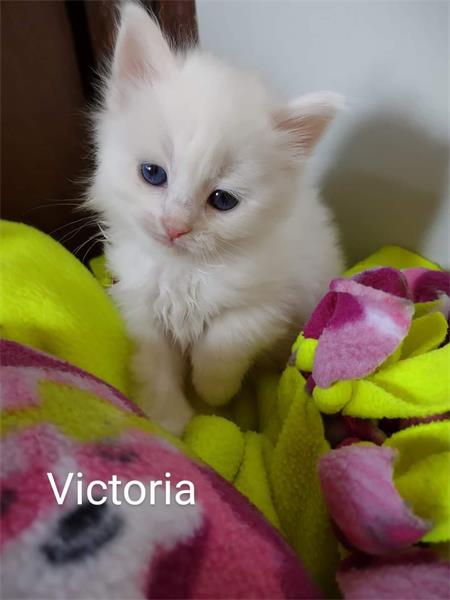 Hello all! I'm looking for some insight on a situation our rescue has never encountered before. At the end of March, one of our pregnant mamas gave birth to 6 kittens, one being solid white and another being solid white with a small orange spot on her head.