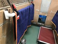 I was hoping for a some kind of metal framed pad that could be hung in front of the concrete block wall. Metal framed to discourage biting and tearing. The attempted solution shown in the picture was quickly destroyed.