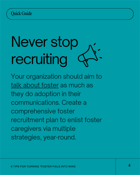 Research shows that nearly half of foster caregivers end up adopting their foster pet at some point. There are a number of strategies you can use to keep your foster base strong while allowing for some expected turnover and reengaging those unable to continue fostering.