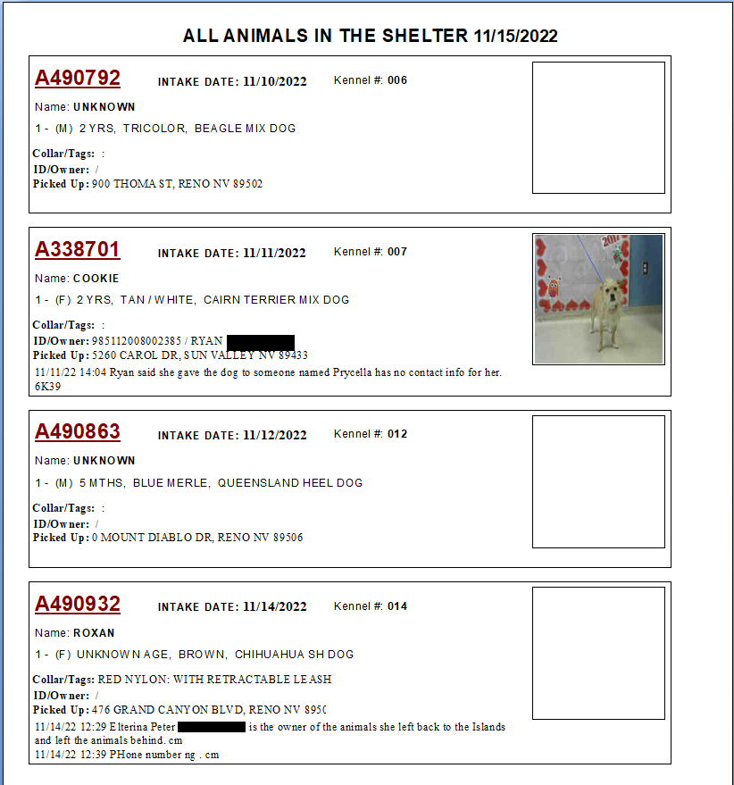 Anyone out there have a Chameleon report that lists the current shelter population either