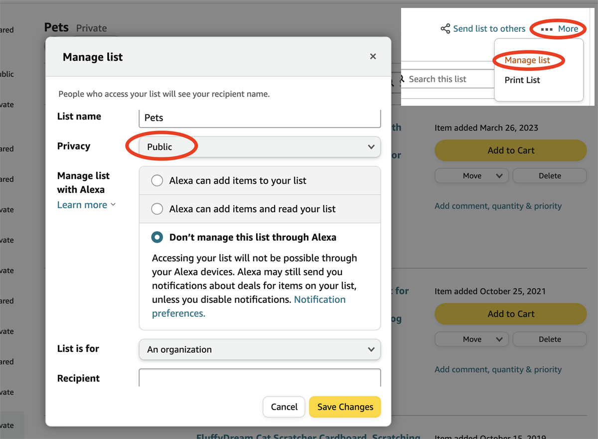 That Amazon link didn't work for me. You might need to go into the list and make it a Public list so that others can see it. Just go to Manage List -> then set the Privacy to Public. Here's an example --