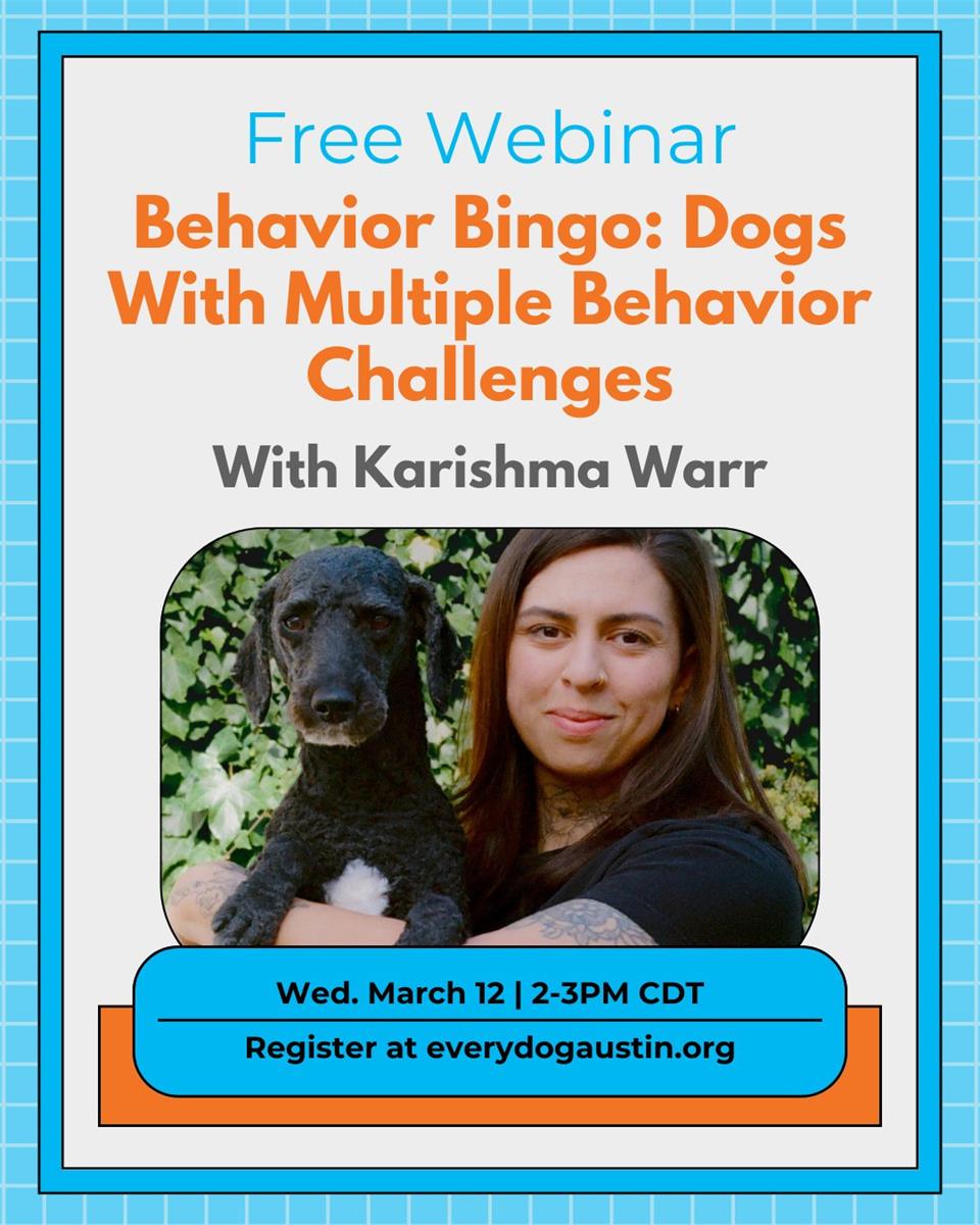 Join us for a free webinar: Behavior Bingo: Dogs With Multiple Behavior Challenges