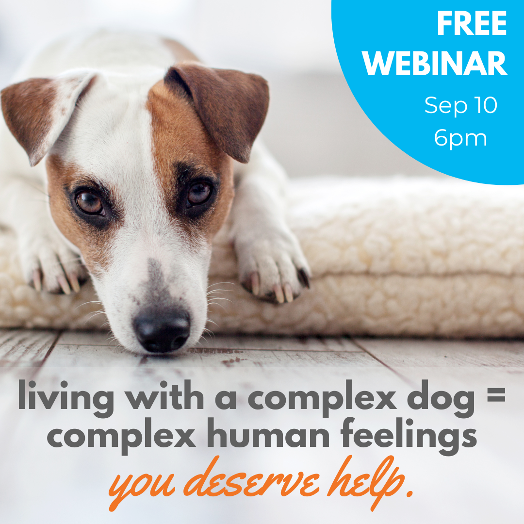 FREE WEBINAR! A great one for dog parents and anyone who works with complex or challenging dogs.