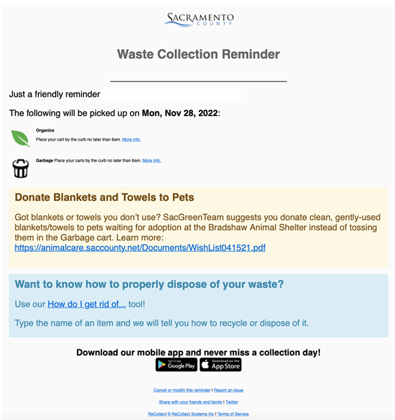 Just had to share this: I received my weekly reminder email yesterday from my local County Waste Management/Recycling Services Department and was thrilled to see a message highlighting our local county animal shelter's wish list! I love that these two county agencies partnered together to get the word out.