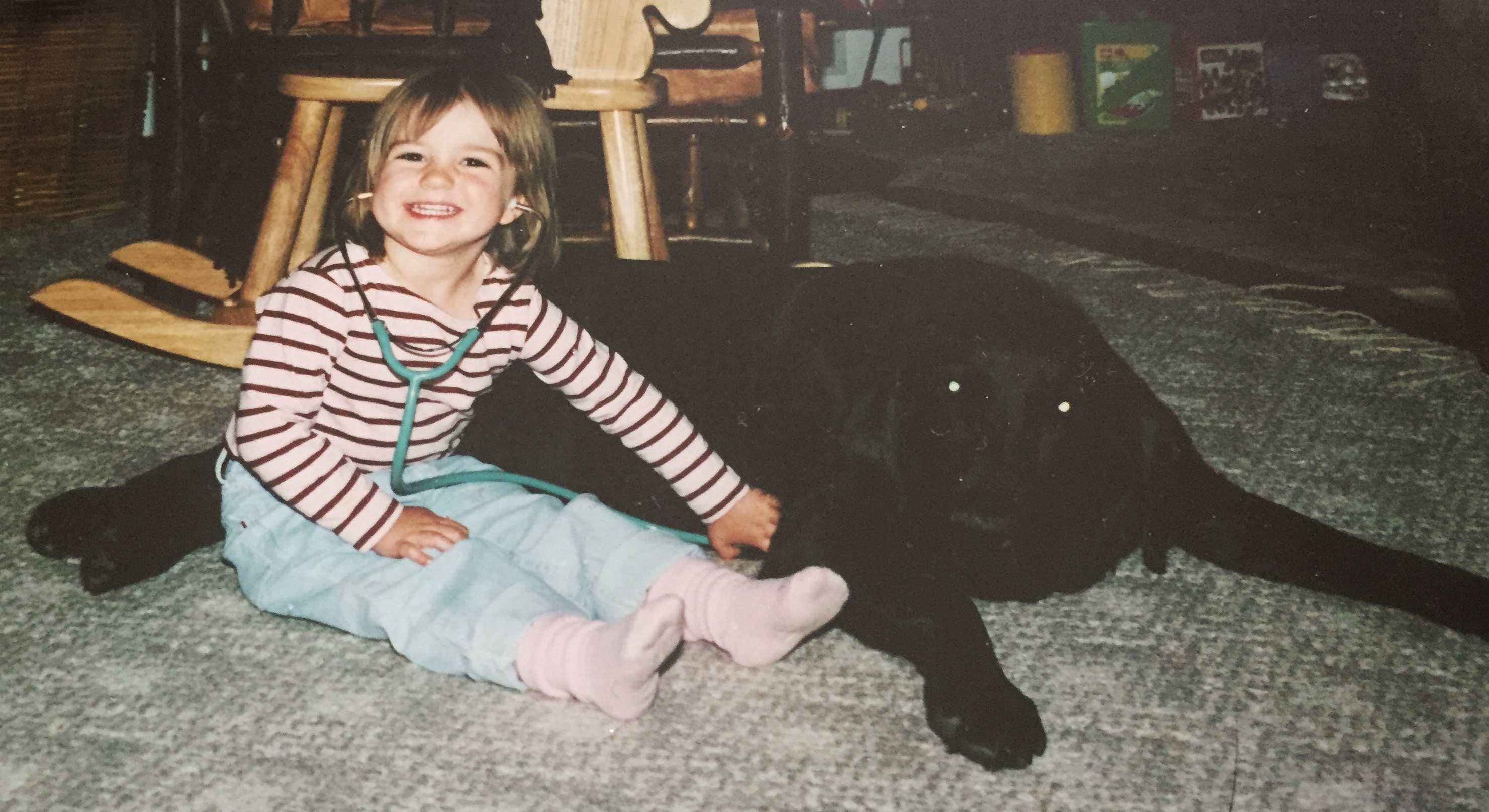In my favorite photograph, I am three years old holding a stethoscope up to the chest of my black lab, Napoleon. I could never verbalize my instinctual desire to pursue a career in veterinary medicine until October of 2019. I was volunteering at the Downtown Clinic (DTC), a primary health care clinic for low-income individuals in Laramie, WY. One day a man walked in, and although dogs were not typically allowed in the clinic, they always made an exception for his pug, Daisy, who followed right behind him. I will never forget the look of adoration Daisy had or the warmth and kindness that emitted from the man's gaze as he looked back at her. As I watched this beautiful interaction, I began to feel uneasy. He was here because he could not afford his own health care, and as I petted Daisy, I could not help but wonder what that meant for her veterinary care.