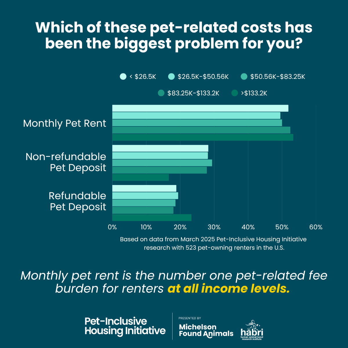 Monthly pet rent is the top pet-related fee burden for renters-across all income levels.