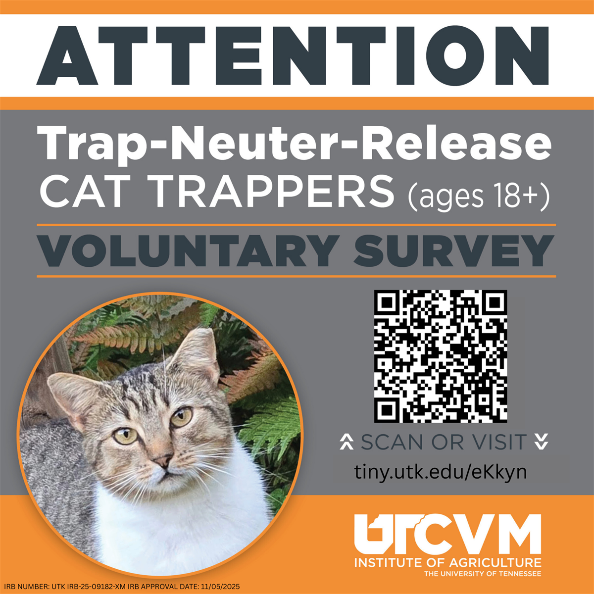 You are invited to take part in a voluntary survey about the motivations and limitations of cat trappers. The survey takes approximately 10–12 minutes to complete. The results of this study may inform how animal welfare organizations, veterinary teams, and community members understand and support people involved in TNR. You must be 18 or older to participate.